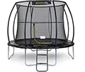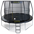 The JumpKing Deluxe Combo is a complete trampoline set. Unlike traditional outdoor trampolines, the new Combo Deluxe comes with an integrated safety net enclosure, which saves on costs, looks better (no ugly fixing brackets), and cuts down assembly time (and of course dis-assembly time if you need to be able to take it down). This combination set comes in one simple box, providing you with everything you need to get the whole family up and bouncing. The Deluxe Combo is durable, attractively designed, and the enclosure netting is fully-supported by horizontal shock-corded rods, creating a secure and impressive bounce arena. In our opinion, this product is ideal for those customers who are looking for a good trampoline and want a simply-good solution in one easy-to-manage delivery (includes trampoline, enclosure, ladder & tie-down kit) at a very competitive price!