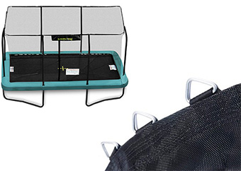9 x 13 Rectangular has 84 x 7" long (18 cm) silver springs (as well as 8 x 3.5" long (9 cm) springs, also shown on this page). Springs stretch over time, reducing the bounce of your trampoline, so replacing these can improve performance. |