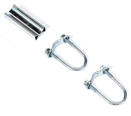 This fixing bracket set is designed to securely attach an arched enclosure pole to the leg of your trampoline. Each set includes all components required to fix one enclosure pole: two U-brackets, four nuts, and spacers. Compatible with all arched-style JumpKing safety enclosures, this kit ensures a stable and secure connection. - Genuine JumpKing OEM spare part