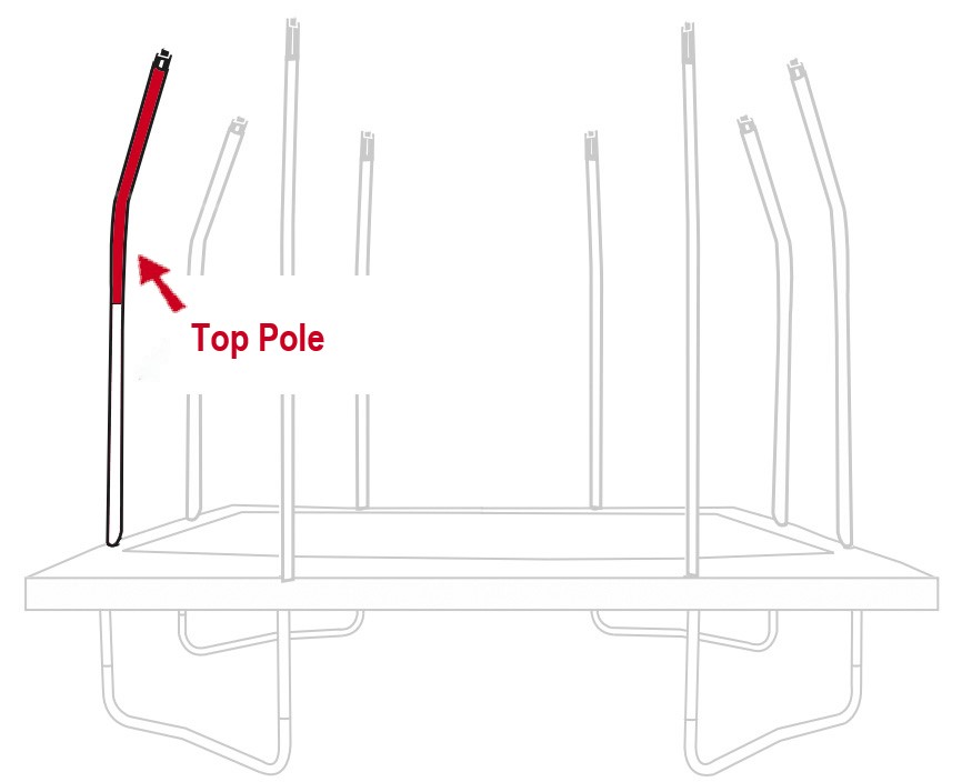 Damage to enclosure poles is rare but can occur if the trampoline is blown over in strong winds. This can be prevented by using a tie-down kit to anchor the trampoline securely. This is the curved top enclosure pole, compatible with the JumpKing 12 ft x 17 ft Rectangular trampoline. Supplied without foam protector and plastic pole cap; both are available separately. - Genuine JumpKing OEM spare part