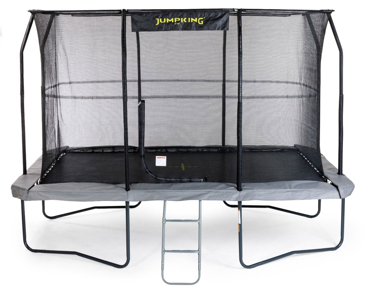 The JumpKing 8 ft x 12 ft Rectangular Combo Pro Trampoline with Accessories offers an excellent balance of size and performance, providing a controlled rectangular jumping area along with useful accessories. Features: Fully stitched-in enclosure for enhanced safety and a secure fit. Horizontal quick-fit shock-corded rods provide stability. Unique Tri-Layer socket enhances durability and eliminates brackets. Fully fastened entry/exit door for safety. Strong grey powder-coated steel frame. Manufactured by JumpKing, one of the leading trampoline brands. - Dimensions: 12 ft (3.7 m) x 8 ft (2.5 m)