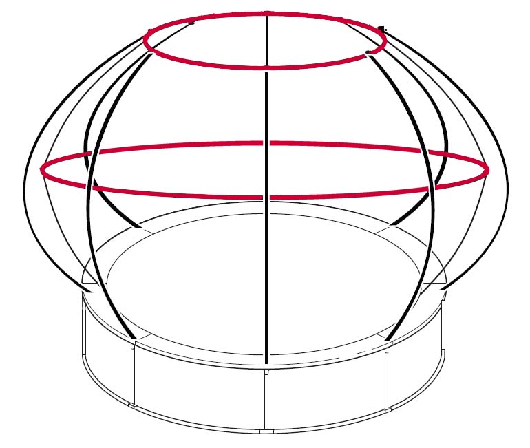 The circular G3 rods at the top and middle of the 8 ft ZorbPOD net keep the net in correct shape. These rods are supplied as a set of 2 rings for top and middle positions. - Genuine JumpKing OEM spare part